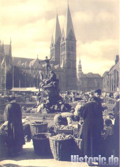 Wie gesagt, hier treffen wir uns: Domshof mit Wochenmarkt... und der Teichmannbrunnen...